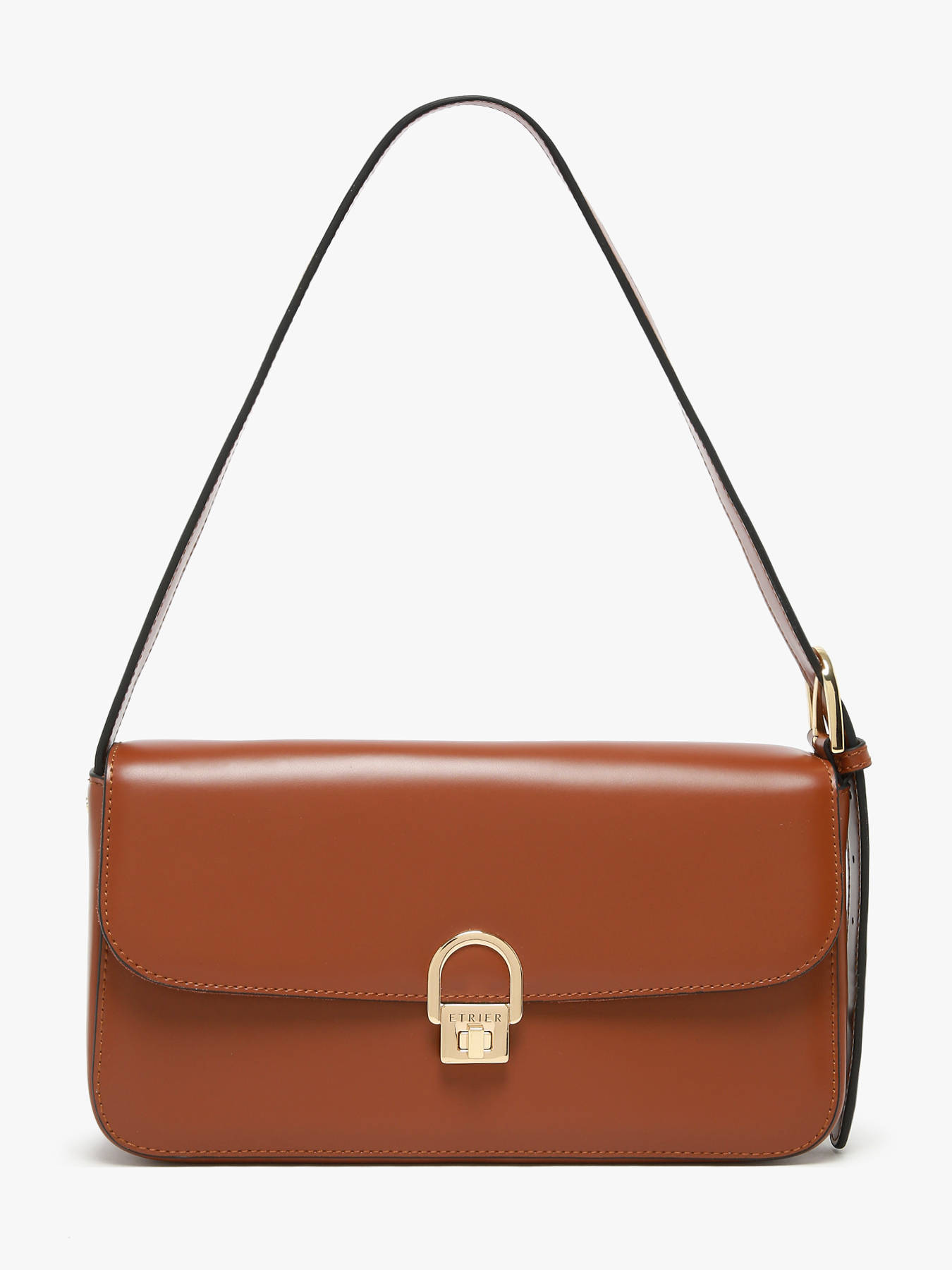 Le sac porté épaule ETRIER de la ligne ALTAIR revisite avec élégance la forme baguette cette saison. Il se distingue par une poche au dos et une fermeture par rabat ornée d’un fermoir doré, emblématique de l’identité ETRIER. Sa anse, réglable sur le côté, permet d’ajuster facilement la hauteur du porté pour un confort optimal. L’intérieur, pensé pour le quotidien, dispose d’une poche plaquée et d’une poche zippée, alliant praticité et raffinement.